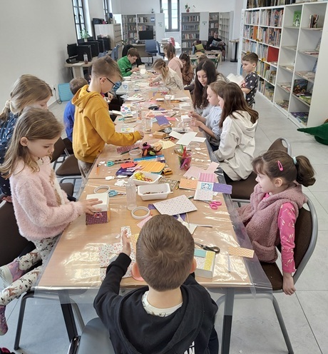 Czym jest Exploding Box? To efektowne, dekoracyjne pudełko, które po otwarciu „eksploduje” – jego ścianki rozkładają się, odsłaniając piękne ozdoby, życzenia i niespodzianki! To świetny pomysł na wyjątkowy prezent dla bliskich. Zobaczcie jakie efektowne niespodzianki powstały na naszych zajęciach w środę w ramach zajęć Ferie w Bibliotece!