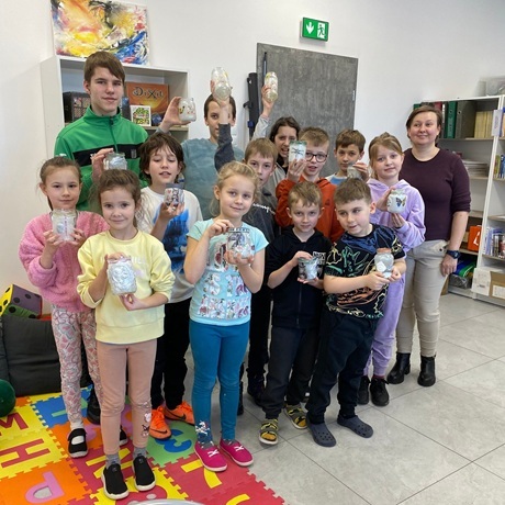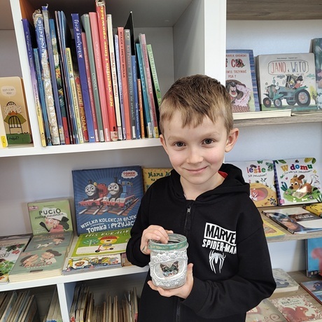 Podczas poniedziałkowych zajęć bibliotecznych dzieci miały okazję stworzyć wyjątkowe lampiony przy użyciu techniki decoupage. Z kolorowych serwetek, papieru ryżowego i szklanych słoików powstały prawdziwe małe dzieła sztuki, które po zapaleniu świeczki rozświetlą zimowe wieczory. Twórcza atmosfera sprzyjała rozmowom, a każdy uczestnik mógł wyrazić swoją kreatywność, komponując niepowtarzalne wzory.