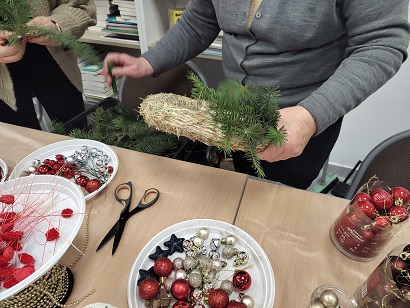 Na warsztatach zorganizowanych w GBP w Sernikach postanowiliśmy przygotować świąteczne wieńce,
